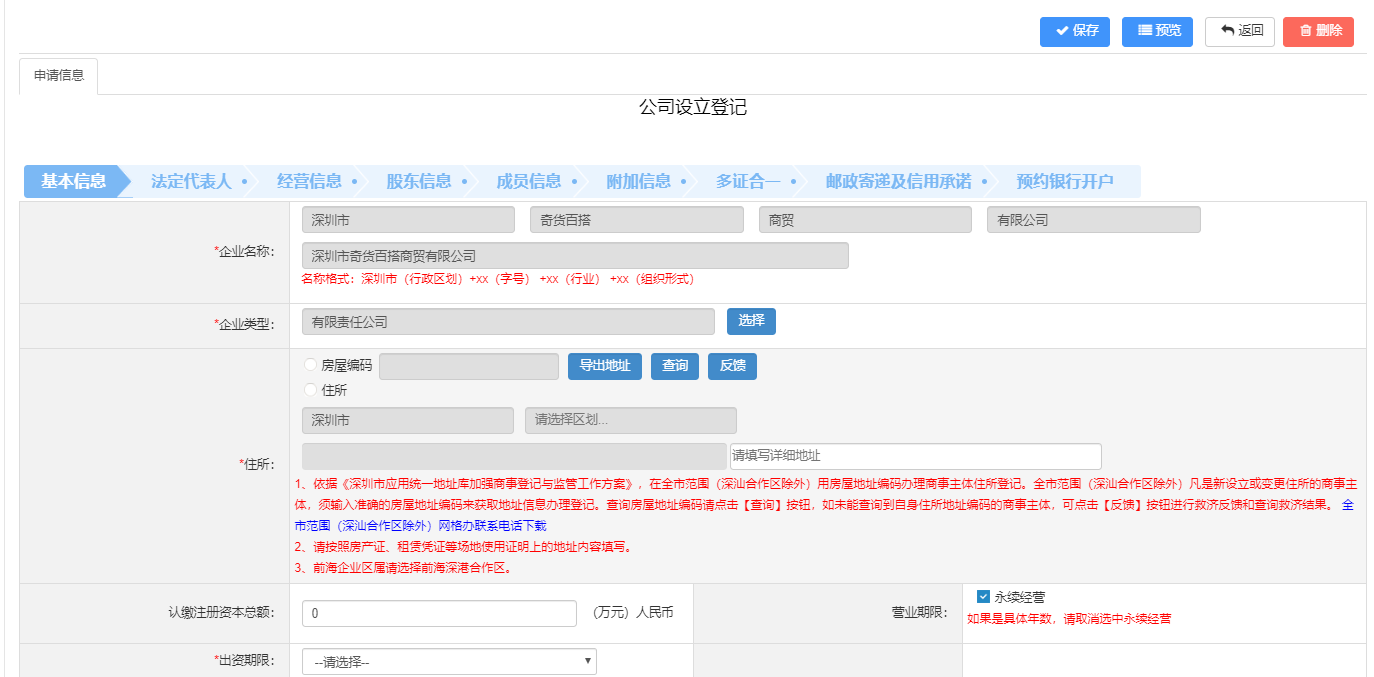 2)通過開辦企業(yè)一窗通平臺(tái)辦理