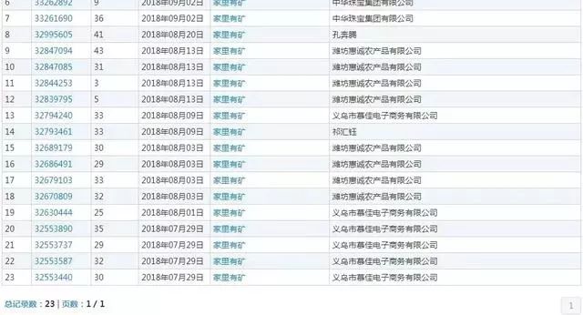 該詞的商標申請共有23件申請記錄,其中濰坊某公司為化妝品等申請了第3類。忍不住調侃:家里有礦牌化妝品,知道嗎?