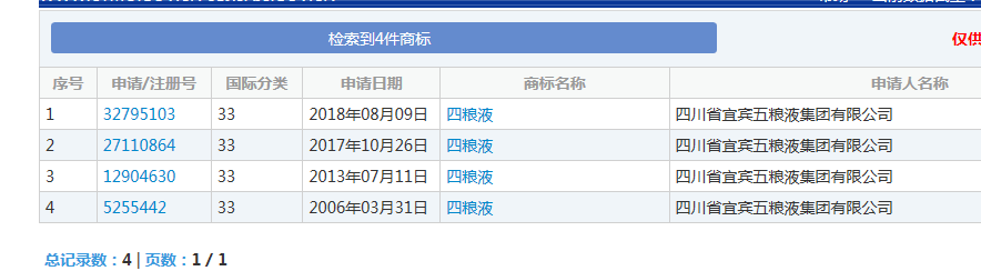 一個已經(jīng)進入初審公告期,一個已經(jīng)作廢。2007年申請的“六糧液”商標,2011年注冊成功,現(xiàn)在已經(jīng)顯示無效。