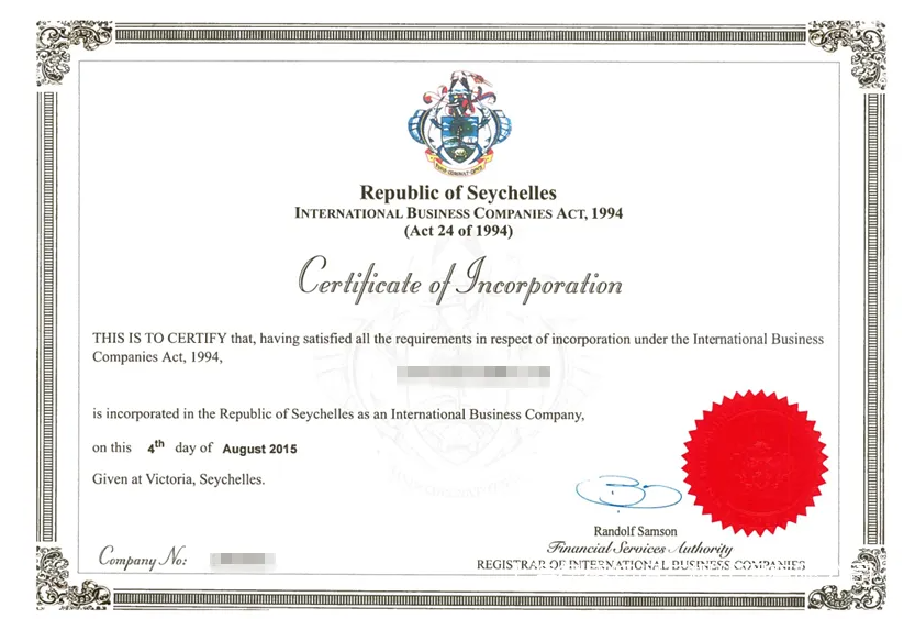 1.塞舌爾公司注冊(cè)證書